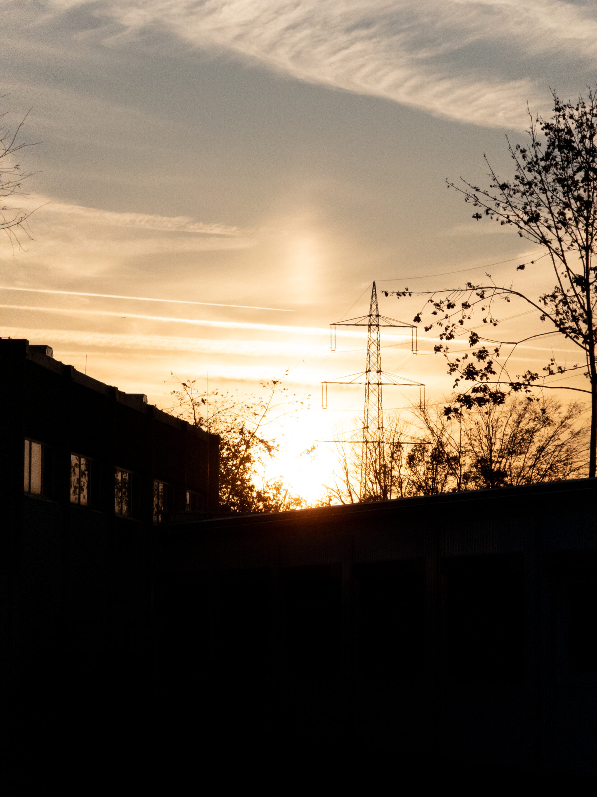 Foto: Lichtsäule und Überlandleitung